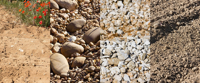 羅納河谷葡萄園坐落于中央高原(Massif Central)與阿爾卑斯山(Alps)之間,北邊被中央高原古老的噴發(fā)巖所覆蓋,南邊是中生代(侏羅紀(jì)和白堊紀(jì))的海洋沉積土壤,以石灰?guī)r為主。第三紀(jì)末(約2400萬(wàn)年至700萬(wàn)年前),阿爾卑斯山的形成,使得河谷崩裂,將高原分成兩半。地中海的海水涌進(jìn)來,用巖屑填滿了河谷。從第四紀(jì)開始,河谷的坡面形成了很多沖積和崩積而來的階地。如今,羅納河谷葡萄園的風(fēng)土主要由四種巖石構(gòu)成:花崗巖、沙土、石灰?guī)r和黏土。這些母巖對(duì)葡萄樹根部保持適宜的水分起到了關(guān)鍵作用,為這里的葡萄酒帶來結(jié)構(gòu)與芳香。