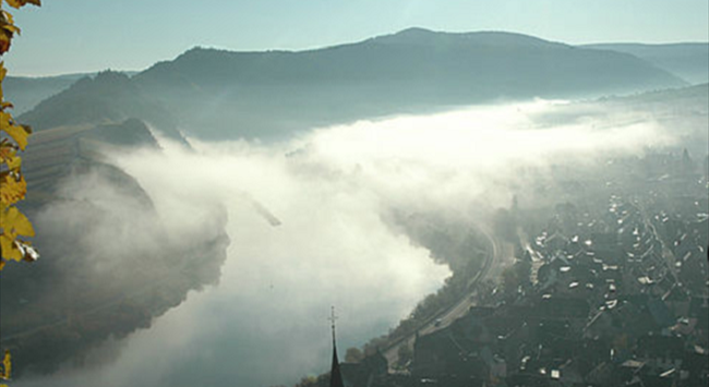 由于地理位置偏北,摩澤爾整體為偏冷的大陸性氣候。產(chǎn)區(qū)內(nèi)地形獨(dú)特,優(yōu)質(zhì)的葡萄園主要分布于摩澤爾河及其支流沿岸陡峭的斜坡之上,靜靜與摩澤爾河對(duì)望,這些葡萄園受到河面反射的太陽(yáng)光的影響,可以獲取更多的熱量供葡萄成熟。其中,正南及西南朝向的葡萄園還能夠最大程度地受到陽(yáng)光直射,因此條件最為優(yōu)渥。摩澤爾的土壤主要為板巖等巖石土壤,這類土壤滲透性極佳,可以在當(dāng)?shù)仡l繁出現(xiàn)暴雨天氣的情況下,為葡萄的生長(zhǎng)提供保護(hù)。同時(shí),這類土壤儲(chǔ)熱性也十分突出,有利于葡萄達(dá)到完美的成熟度,此外還能為葡萄酒增添些許礦物質(zhì)風(fēng)味。