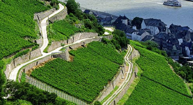 萊茵高與行政區(qū)域“萊茵高”同名,意為“萊茵河地區(qū)”。盡管該產(chǎn)區(qū)的面積只占德國(guó)總產(chǎn)區(qū)的3%,但它卻是雷司令的搖籃產(chǎn)區(qū):1435年,雷司令作為萊茵高的優(yōu)良釀酒品種載入史冊(cè),這是目前已知的關(guān)于雷司令最早的記錄之一。此外,萊茵高還曾在德國(guó)葡萄酒釀造史上有過(guò)許多重要的首創(chuàng)之舉,例如,1775年,正是萊茵高的約翰山修道院(Johannisberg)在各種機(jī)緣巧合下,首次發(fā)明了晚收型葡萄酒,并發(fā)現(xiàn)了貴腐菌的存在,從此開(kāi)啟了利用特選葡萄釀制高品質(zhì)葡萄酒的歷程。