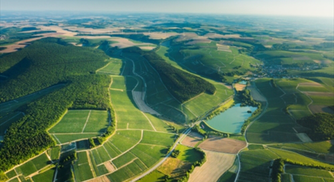 夏布利是勃艮第最靠北的葡萄酒產(chǎn)區(qū),被譽(yù)為通向勃艮第產(chǎn)區(qū)的“金色門戶”,距離更靠北的香檳產(chǎn)區(qū)不遠(yuǎn)。夏布利產(chǎn)區(qū)位于北緯47°左右,主要以大陸性氣候?yàn)橹?。?dāng)?shù)厝荷江h(huán)繞,瑟蘭河(Serein)從中穿過,葡萄園大都分布在河谷兩側(cè)的山坡上。