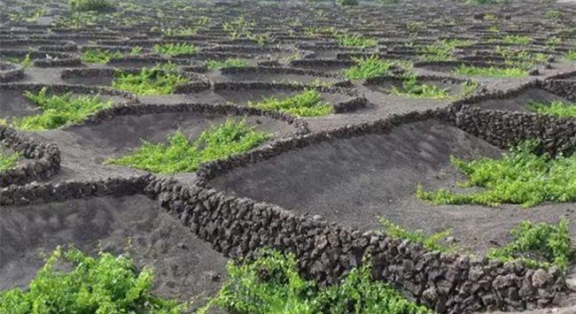 加那利群島黑色的土壤總讓人想起侏羅紀(jì)公園。這些島嶼位于大西洋上,地理位置靠近非洲,這里的葡萄園生機(jī)勃勃。島上的釀酒品種封堵多樣,除了葡萄樹外,加納利群島還種植了許多熱帶花卉、香蕉和蔬菜。蘭薩羅特島是人口最多的島嶼,1730年到1736年,這里發(fā)生了大規(guī)模的火山噴發(fā)活動,這里的土地被覆蓋上了近5米厚的熔巖層。每年冬天,猛烈的撒哈拉沙暴卡利瑪(Calima)都會席卷加那利群島。為了保護(hù)葡萄藤,庫拉拉法葡萄訓(xùn)練法是必不可少的——人們用巨大的石墻圍繞著埋在地下的葡萄藤。