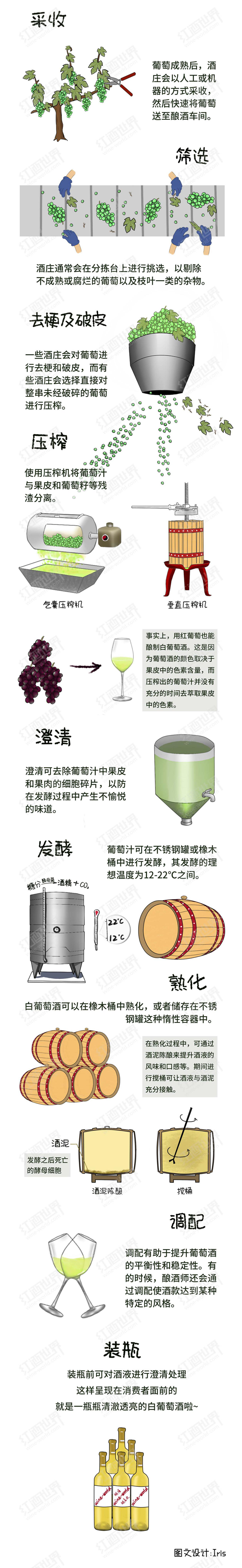 白葡萄酒的顏色通常呈青檸色到金黃色不等,因此給不少人留下了白葡萄酒只能由白葡萄釀造而成的印象。其實(shí),清澈透亮的白葡萄酒也可以采用紅葡萄作為原料,至于其為何沒有染上動(dòng)人的紫紅色,還得從它的釀造過程說起。
