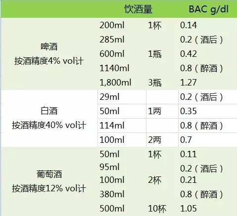 那么,不同的血液酒精濃度對應(yīng)多少酒呢?