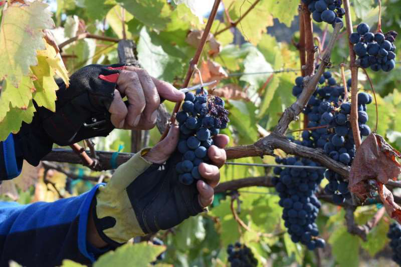 大部分酒莊會(huì)選擇先采摘白葡萄品種再采摘紅葡萄品種。為了把握好最佳的采收時(shí)機(jī),很多酒莊會(huì)在葡萄進(jìn)入轉(zhuǎn)色期后就對(duì)其成熟度進(jìn)行密切的監(jiān)測(cè)。采收的方式分為人工和機(jī)器采收2種。手工采收由葡萄農(nóng)用園藝剪刀將葡萄一串串地剪下來,這種采收方式較為緩慢,而且所需的勞動(dòng)力較多,但可以對(duì)所采收的葡萄進(jìn)行挑選,對(duì)葡萄果實(shí)的損壞也較少。