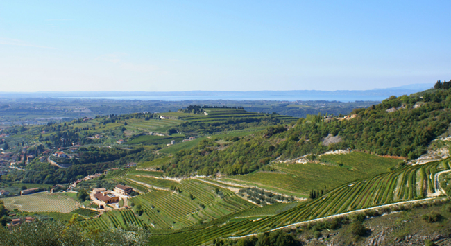 瓦坡里切拉位于維羅納(Verona)北部,地處阿爾卑斯山(Alps)山麓,西面臨近意大利最大的湖泊加爾達湖(Lake Garda),地形以平原和山麓為主。由于受到山脈的阻擋,再加上湖泊的調(diào)節(jié)作用,產(chǎn)區(qū)內(nèi)的氣候整體比較溫和,可以為葡萄提供理想的自然生長環(huán)境。相傳在拉丁語中,產(chǎn)區(qū)名字“Valpolicella”意為“Valley of Many Cellars(匯聚眾多酒窖的山谷)”,這也從側(cè)面印證了該地與葡萄酒的淵源。