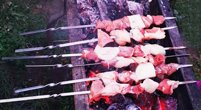 烤羊肉串是一種流行于中東、南亞、中亞、地中海、東亞等多個(gè)地區(qū)的羊肉菜式。在中國,烤羊肉串的歷史可追溯至東漢時(shí)期,20世紀(jì)80年代以來隨著時(shí)代的發(fā)展,在大江南北傳揚(yáng)開來??狙蛉獯此坪?jiǎn)單,要保證羊肉既入味又鮮嫩卻并非易事,工序也十分考究——取新鮮羊肉或切片切塊,串穿在細(xì)鐵釬上,放置在烤爐上焙烤,再撒上些辣子面、胡椒粉和孜然粉等,不斷翻動(dòng),烤至雙面金黃,肉質(zhì)熟透。