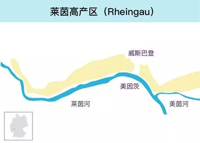 萊茵高位于萊茵河畔。雖然它的面積僅占整個德國葡萄酒產(chǎn)區(qū)很小的一部分,但在德國葡萄酒發(fā)展歷史上卻有很多重要的創(chuàng)舉,擁有大量蜚聲世界的釀酒商,如約翰山酒莊(Schloss Johannisberg)。1775年,正是萊茵高的約翰山修道院在各種機緣巧合下,首次發(fā)明了晚收型葡萄酒,并發(fā)現(xiàn)了貴腐菌的存在,從此開啟了利用特選葡萄釀制高品質(zhì)葡萄酒的歷程。