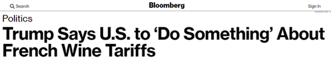 其實,川普盯上法國葡萄酒也不是頭一回了,之前就在推特上發(fā)文炮轟,痛斥法國在葡萄酒貿(mào)易上“霸道”,說的也是關(guān)稅的事。