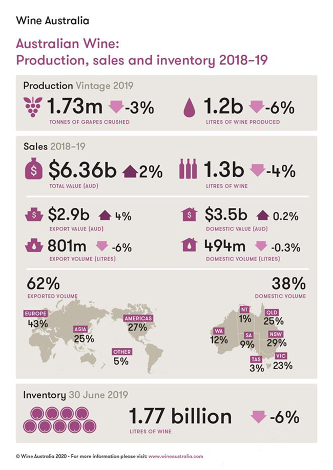 根據(jù)澳大利亞葡萄酒協(xié)會(Wine Australia)今天發(fā)布的《2019年葡萄酒生產(chǎn)銷售和庫存報告》顯示,澳洲葡萄酒總銷量連續(xù)第二年超過產(chǎn)量,這表明供應(yīng)趨緊并提升了澳大利亞葡萄酒行業(yè)的價值。