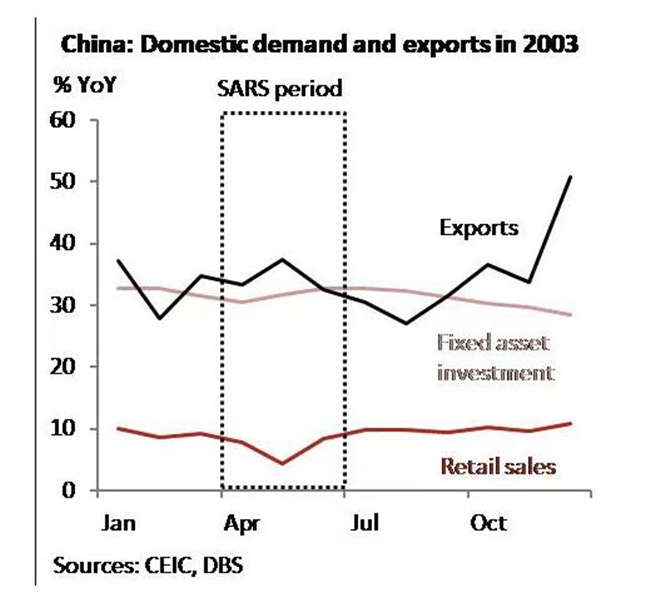 星展集團(tuán)(DBS Group)的報(bào)告指出,2003年SARS疫情爆發(fā)期間零售銷售遭到很大的打擊,但疫情過后短時(shí)間內(nèi)消費(fèi)就有很大的反彈。可以預(yù)見,新冠疫情結(jié)束之后,經(jīng)營良好的企業(yè)將趁著消費(fèi)反彈的大勢(shì)蠶食原本屬于健康度不佳的企業(yè)的份額。