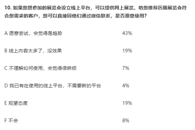 10. 43%的企業(yè)愿意嘗試網(wǎng)上展會。