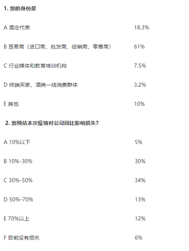葡萄酒產(chǎn)業(yè)鏈長,上下游關(guān)系復(fù)雜。在當前疫情下,對葡萄酒行業(yè)不同層面的影響各有不同。但疫情不會改變中國葡萄酒行業(yè)的快速向前發(fā)展,疫情會對2020年的中國葡萄酒行業(yè)造成影響,影響有多大?如何影響?TopWine China根據(jù)上周發(fā)布的調(diào)查報告來逐一分析: