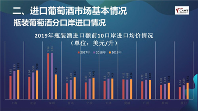 在仔細(xì)分析口岸數(shù)據(jù)后就會發(fā)現(xiàn),深圳由2018年的5.24億美元,迅速下滑到2019年的2.55億美元。我認(rèn)為這與2018年,深圳口岸由于種種原因進(jìn)口了大量的高端酒、奢侈酒有關(guān)。進(jìn)一步去想,2019年整個(gè)大盤下跌15%,受高端酒、奢侈酒的影響較大,整個(gè)市場其實(shí)并沒有受到過多沖擊。