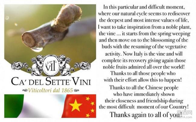 危難見真情。中國抗擊新冠病毒疫情的戰(zhàn)役剛接近尾聲,就向意大利無私的伸出援手,派出精英醫(yī)療隊、援助醫(yī)療防疫物資。意大利酒莊通過海報、宣傳,表達(dá)對中國人民的感激之情。