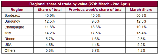 今天,英國(guó)和紐約已封城兩周,而法國(guó)和意大利則分別第4周和第5周。 然而,在這困境期間,消費(fèi)者對(duì)葡萄酒和烈酒仍需求不變。 雖然3月份的市場(chǎng)交易總值下跌,但交易量卻創(chuàng)歷史新高。