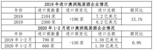而因為抗沖擊能力弱,當遭遇疫情沖擊導(dǎo)致市場低迷的情況,部分小微企業(yè)或?qū)⒕痛送顺鑫枧_。以今年1-2月為例,進口澳洲瓶裝酒企業(yè)較同期減少的企業(yè)數(shù)量(130家)中絕大多數(shù)為小微企業(yè),但同時也有不少甚至更多的小微企業(yè)聞風而來“補位”。