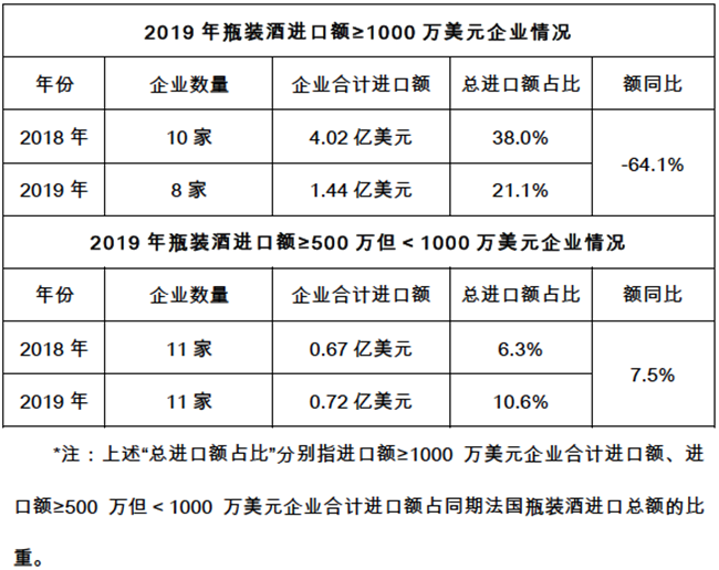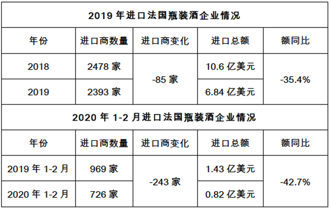 今年1-2月,市場低迷與疫情影響的雙重沖擊下,更是出現(xiàn)了無企業(yè)進口法國瓶裝酒超過500萬美元的慘淡開局。