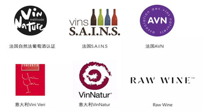 除左上角法國(guó)自然法葡萄酒認(rèn)證標(biāo)識(shí)為官方認(rèn)證外,其余均為自然酒聯(lián)盟組織