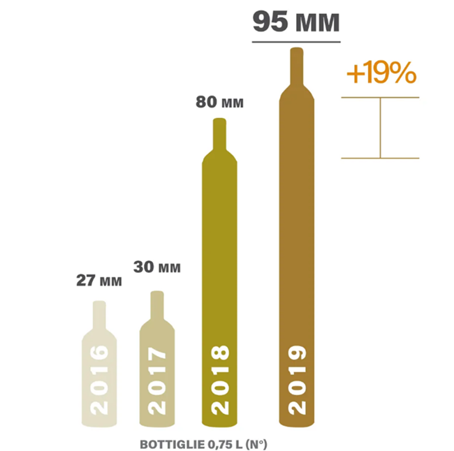 2019年,SICILIA DOC產(chǎn)量超過9500萬瓶(750ml),與2018年相比增長了19%。