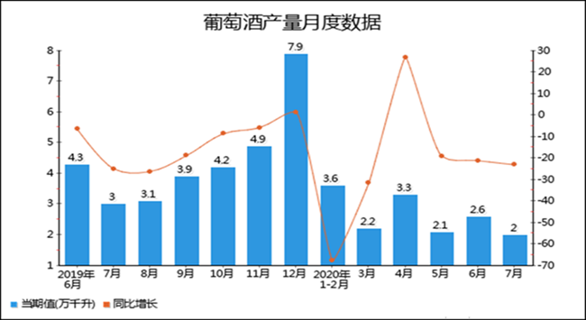 2020年1-7月全國(guó)葡萄酒產(chǎn)量分月數(shù)據(jù)