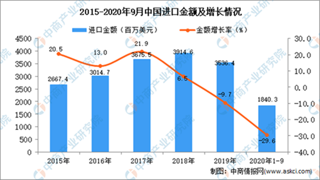 數(shù)2020年1-9月中國葡萄酒進(jìn)口量及金額增長情況