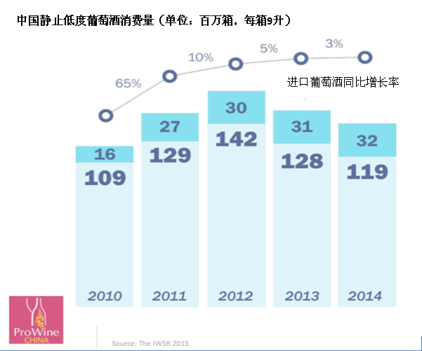 上周在ProWine China的展覽會(huì)上,引用國(guó)際葡萄酒及烈酒研究機(jī)構(gòu)的數(shù)據(jù)來(lái)說(shuō)明,中國(guó)市場(chǎng)是如何在2010年到2011年之間實(shí)現(xiàn)快速增長(zhǎng),到2012年達(dá)到頂峰,又是如何在過(guò)去的兩年里開(kāi)始回落的。