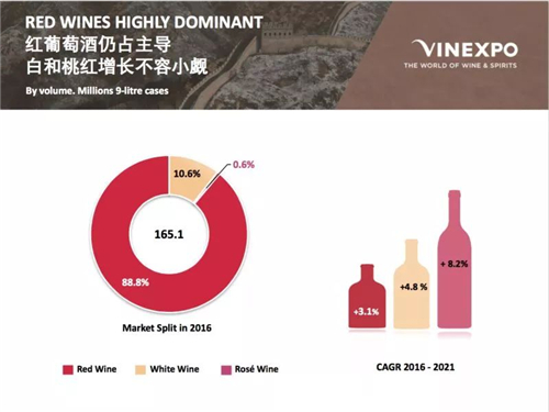 其中,紅葡萄酒仍然我國人民的最愛,但白葡萄酒以及桃紅的增長速率卻不容小覷。