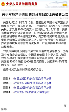中國商務(wù)部新聞發(fā)言人就美國對160億美元中國產(chǎn)品征稅發(fā)表談話,并表示美方一意孤行,于8月23日在301調(diào)查項下對自中國進口的160億美元產(chǎn)品加征25%關(guān)稅,明顯涉嫌違反世貿(mào)組織規(guī)則。對此,中方堅決反對,并不得不繼續(xù)作出必要回擊。同時,為捍衛(wèi)自由貿(mào)易和多邊體制,捍衛(wèi)自身合法權(quán)益,中方將在世貿(mào)組織爭端解決機制項下就此征稅措施提起訴訟。