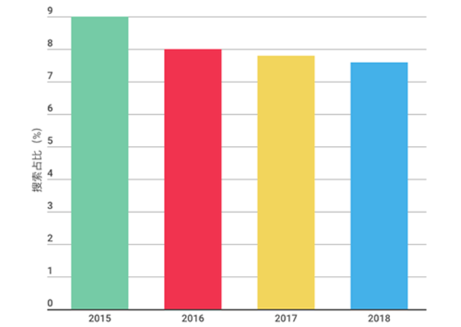 2015至2018年智利葡萄酒在“酒咔嚓”葡萄酒搜索平臺搜索占比變化
