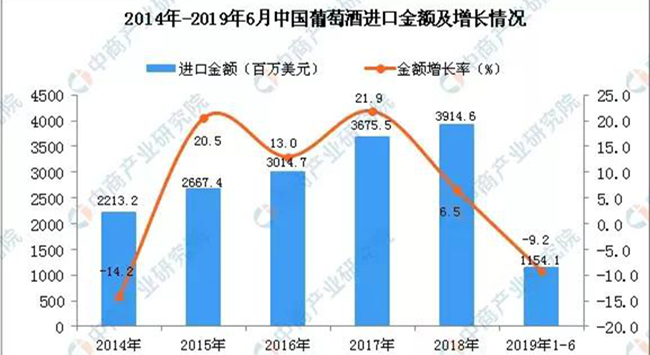 數(shù)據(jù)顯示,2019年上半年中國葡萄酒進(jìn)口量為335471千升,與去年同期相比下降12.9%;進(jìn)口總金額約為14.6億美元。與去年同期相比下降9.2%。