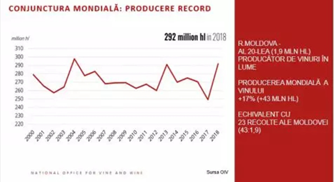 摩爾多瓦國(guó)家葡萄與葡萄酒局表示,在過去10年里,2018年全球2920萬(wàn)千升,相反,包括摩爾多瓦在內(nèi)的世界葡萄酒消費(fèi)量小跌至2440萬(wàn)千升。