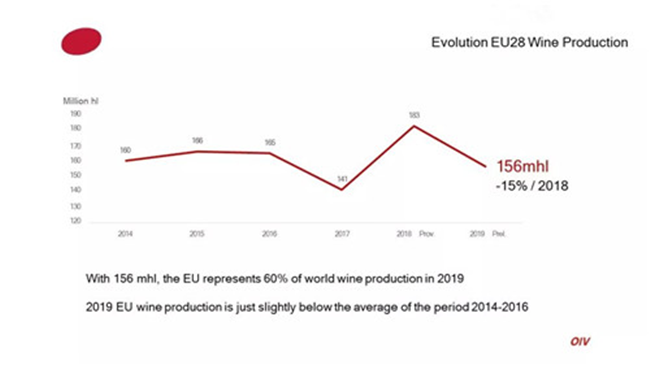 據(jù)國際葡萄與葡萄酒組織(OIV)最新數(shù)據(jù)顯示,2019年全球葡萄酒產(chǎn)量為263億升(mhl),同比2018年下降了10.54%。