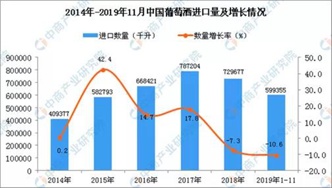 而根據(jù)前瞻產(chǎn)業(yè)研究院的數(shù)據(jù)顯示,2019年國內(nèi)瓶裝葡萄酒進(jìn)口企業(yè)和2018年相比,也至少減少了40%。