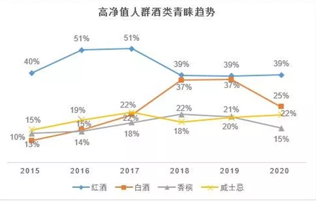 實(shí)際上,葡萄酒已越來越成為中國消費(fèi)者喜愛的酒精飲料。據(jù)胡潤研究院發(fā)布《2020胡潤至尚優(yōu)品—中國千萬富豪品牌傾向報(bào)告》顯示,中國高凈值人群(平均家庭總資產(chǎn)4600萬元)最青睞酒類是紅酒,對葡萄酒的喜愛甚至超過白酒。