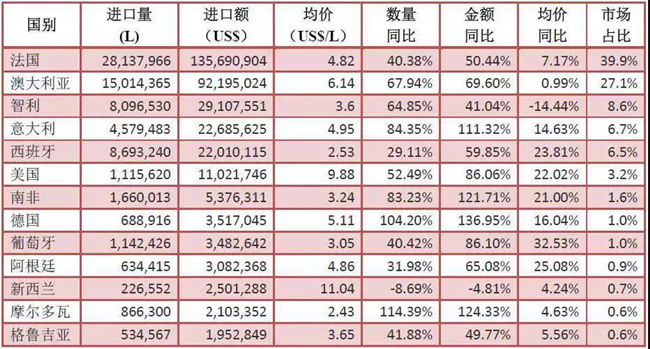 隨著消費者健康消費需求的不斷升級,現(xiàn)代人的飲酒消費方式早已發(fā)生改變。從2018年原瓶裝進口葡萄酒來源國市場表現(xiàn)來看,法國、澳大利亞和智利占據(jù)了前三大市場份額,尤其是智利葡萄酒的優(yōu)勢越來越明顯。據(jù)統(tǒng)計,市場中每銷售100瓶進口葡萄酒中,有10瓶來自于智利。所以可以確定,比起過去70后的“酒桌文化”,主流消費者80后、90后更青睞高品質(zhì)、精品化的產(chǎn)品,而智利的葡萄酒以其易飲、多樣化明顯的優(yōu)勢受到越來越多消費者的喜愛。