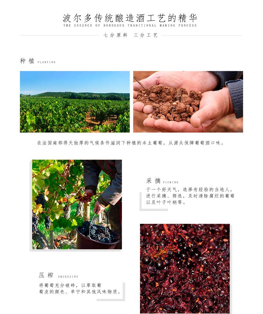 葡萄品種:50%美樂(lè),35%歌海娜,15%西拉