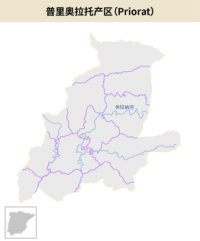 普里奧拉托產(chǎn)區(qū)位于西班牙加泰羅尼亞(Catalonia)地區(qū)、塔拉戈納(Tarragona)省的中心。該產(chǎn)區(qū)靠近西班牙東北部的地中海沿岸,北部是蒙桑特山脈(Montsant Mountain),埃布羅河(Ebro River)的支流休拉納河(Siurana River)貫穿整個產(chǎn)區(qū)。