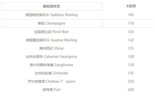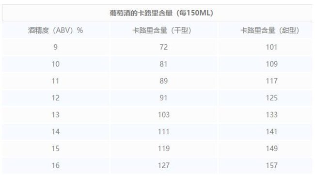 葡萄酒的熱量與其所含的酒精度息息相關(guān)(參考下表),因此不能簡(jiǎn)單地用白葡萄酒、紅葡萄酒來(lái)做比較。