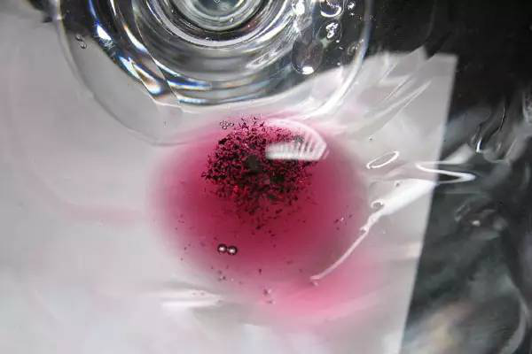 紅葡萄酒中,鐵離子與單寧結(jié)合形成很薄的紅色膜,漸漸變成藍(lán)色沉淀,但被葡萄酒顏色所掩蓋,從而表現(xiàn)出黑色。在白葡萄酒中,鐵離子與單寧結(jié)合,形成鉛藍(lán)色沉淀,酒的顏色也變黑。鐵離子與磷酸鹽結(jié)合的沉淀,呈現(xiàn)白色,在低溫下容易產(chǎn)生,這種沉淀是可逆的,置于陽(yáng)光下,渾濁沉淀消失,主要發(fā)生在白葡萄酒中。