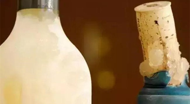 輕微的受凍會使葡萄酒出現(xiàn)少量的冰晶,這些冰晶主要由水分形成,而非酒液內(nèi)的酚類物質(zhì)。等溫度回升到正常飲用溫度后,沉淀物會重新溶解于酒液中,因而,輕微的凍害不會對葡萄酒口感造成多大的影響。