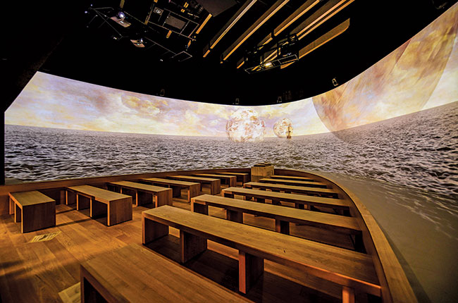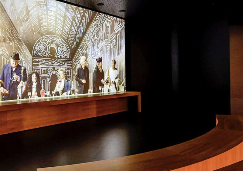這是一個虛擬的宴會,但參觀者卻擁有身臨其境的感覺,仿佛自己與丘吉爾(Churchill)、托馬斯·杰斐遜(Thomas Jefferson)和拿破侖(Napoleon)等世界偉人同坐在一桌宴席上,傾聽他們講述自己對葡萄酒的見解。