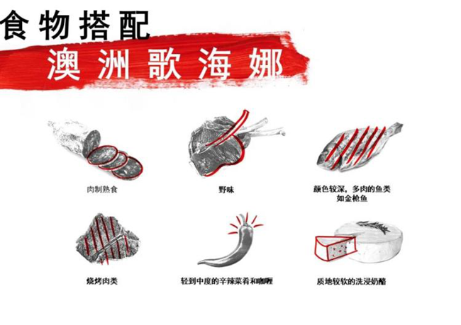 接下去就為大家介紹一下澳大利亞的幾個(gè)代表性葡萄品種與餐品的搭配建議: