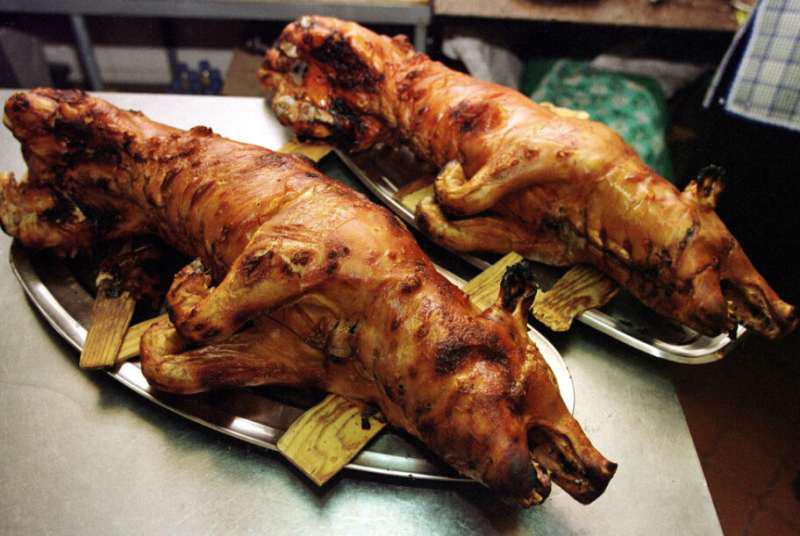 迥別于中式烤乳豬的葡式烤乳豬,先用橄欖油、葡萄酒、黑胡椒、百里香、大蒜等食材制作的調(diào)味汁進(jìn)行腌漬,烘烤的過程中在表皮涂以橄欖油,肉質(zhì)柔嫩不干,皮香肉嫩。它可以與巴巴萊斯科干紅葡萄酒(Barbaresco)、黑皮諾干紅葡萄酒(Pinot Noir)、梅洛干紅葡萄酒和維歐尼干白葡萄酒(Viognier)等搭配享用。
