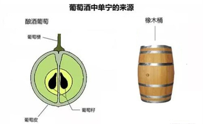 單寧,是葡萄酒中一個(gè)特殊味覺(jué)接觸,回想當(dāng)你吃葡萄時(shí),不小心咬到果核,大概就是這個(gè)味道。