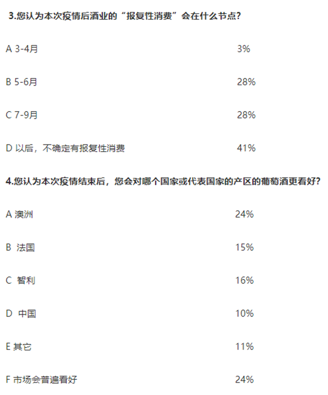 4. 48%的企業(yè)認為疫情結(jié)束后,葡萄酒市場會更被普遍看好。