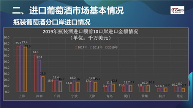 在仔細(xì)分析口岸數(shù)據(jù)后就會發(fā)現(xiàn),深圳由2018年的5.24億美元,迅速下滑到2019年的2.55億美元。我認(rèn)為這與2018年,深圳口岸由于種種原因進(jìn)口了大量的高端酒、奢侈酒有關(guān)。進(jìn)一步去想,2019年整個(gè)大盤下跌15%,受高端酒、奢侈酒的影響較大,整個(gè)市場其實(shí)并沒有受到過多沖擊。
