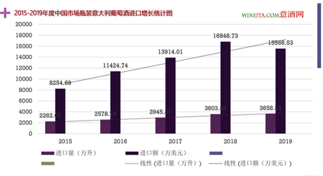 為了方便業(yè)內(nèi)人士更好的理解意大利酒近五年來的成長,意酒網(wǎng)將2015-2019年中國進(jìn)口瓶裝葡萄酒統(tǒng)計(jì)數(shù)據(jù)重新整理,將五年來意大利葡萄酒的進(jìn)口量、進(jìn)口額、均價(jià)和市場份額進(jìn)行對比,得出上圖的2015-2019年度瓶裝意大利葡萄酒進(jìn)口增長統(tǒng)計(jì)表。