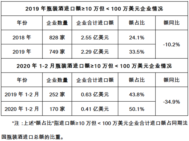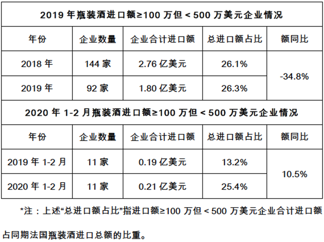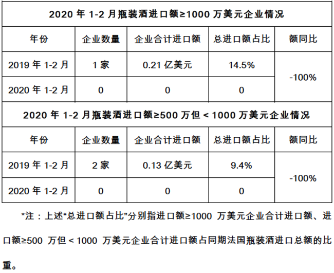 今年1-2月,市場低迷與疫情影響的雙重沖擊下,更是出現(xiàn)了無企業(yè)進口法國瓶裝酒超過500萬美元的慘淡開局。