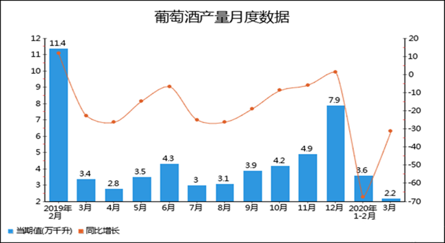 2020年1-3月全國(guó)葡萄酒產(chǎn)量分月數(shù)據(jù)