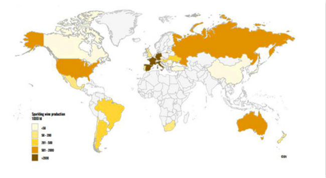 2018年全球起泡葡萄酒生產(chǎn)分布